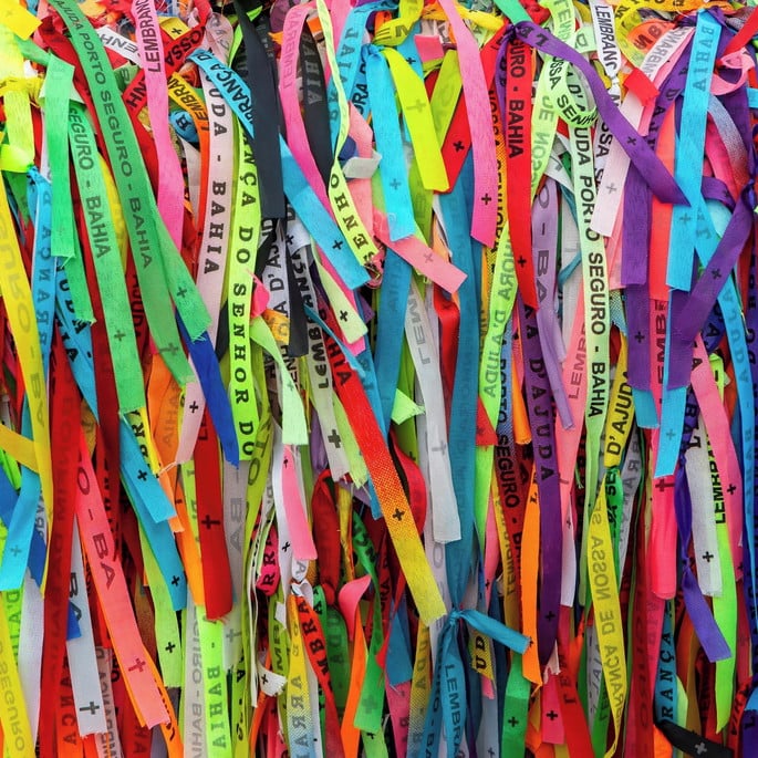 “Sinta a energia vibrante de Arraial d’Ajuda em cada detalhe desta foto única. Capturada nos arredores da Igreja Nossa Senhora D’Ajuda, a imagem retrata a beleza e a alegria da cidade baiana, com suas fitas coloridas e atmosfera festiva.
